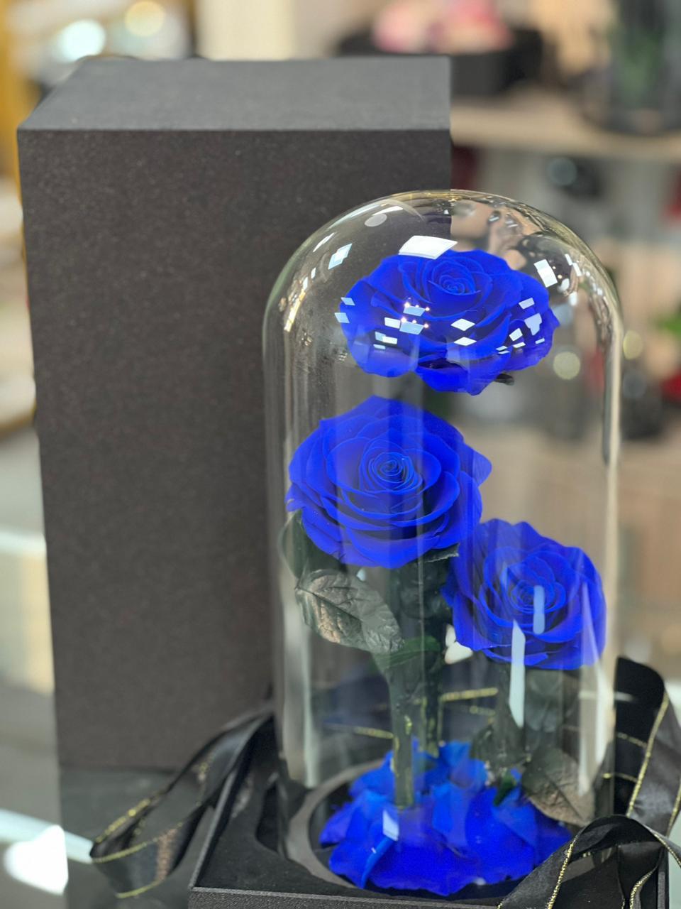 Add a touch of rarity and elegance with the Azure Charm Preserved Blue Roses. This set of three long-lasting blue roses symbolizes uniqueness, mystery, and deep admiration, making them perfect for birthdays, congratulations, or special gifts for someone extraordinary. These preserved roses offer a sophisticated and timeless way to convey your heartfelt emotions. Gift this set of three blue preserved roses to impress and delight, with beauty that lasts for years.